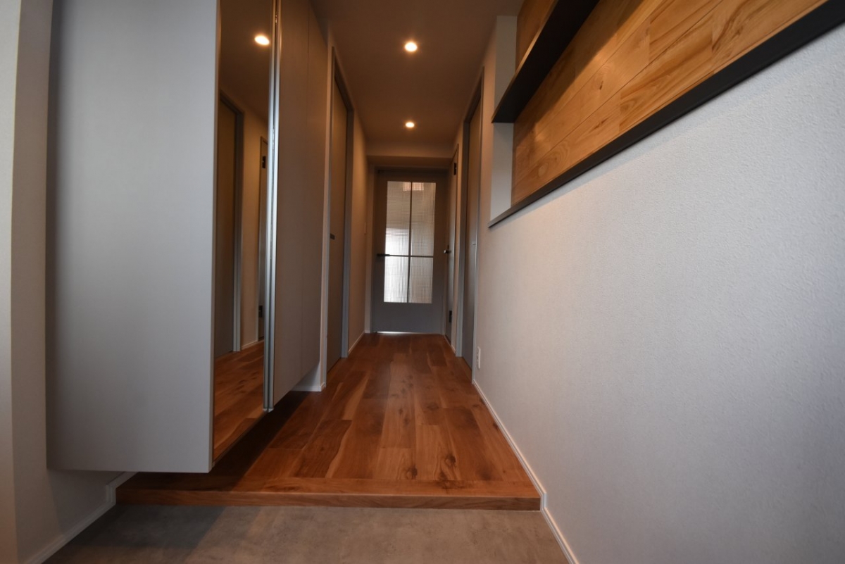 カラーは木の暖かみが感じられるブラウンベース、建具はクールなグレー調を選抜!