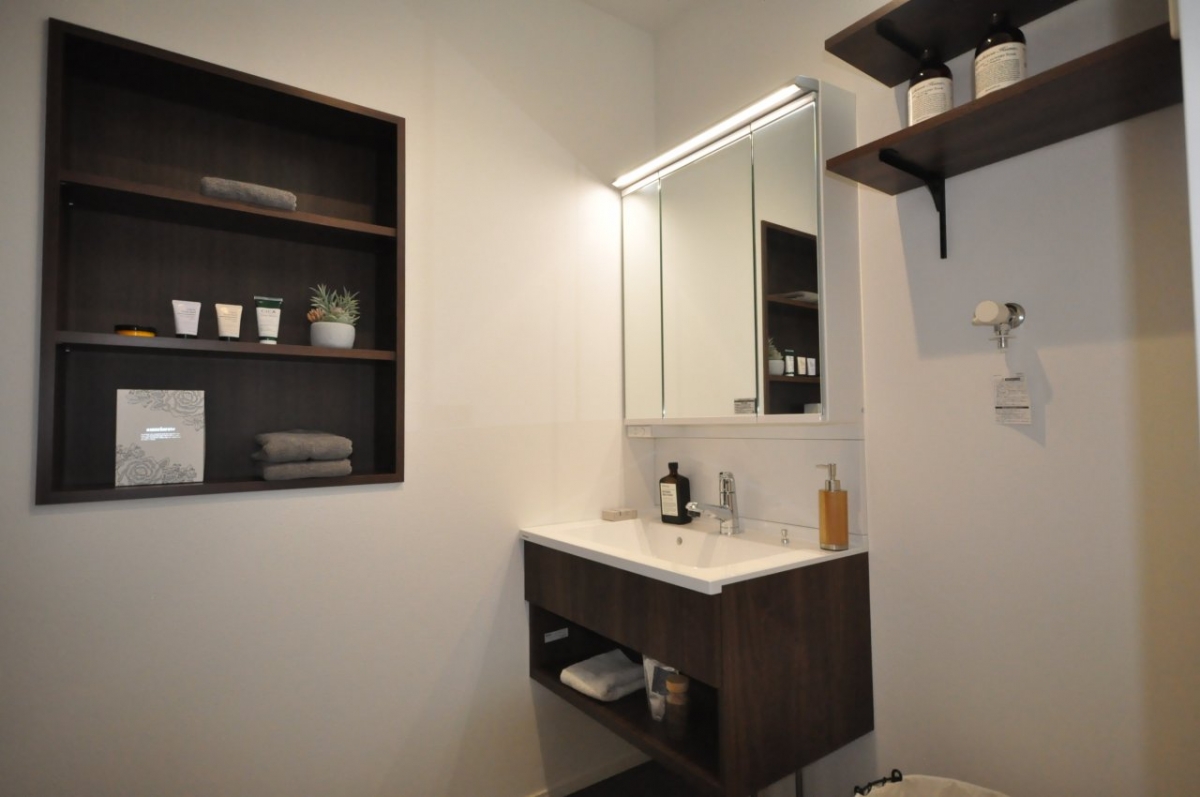 照明器具付き、複層ガラス、24時間換気システム、間接照明、人感照明センサー、オートライト、ダウンライト、ブラインド付、シャッター、屋外電源、システムキッチン、カウンターキッチン、食器洗浄乾燥機、キッチンに窓、コンロ口数(3口以上)、IHクッキングヒーター、オール電化、電気、浴室乾燥機、追焚機能、浴室に窓、浴室暖房、トイレ2箇所、温水洗浄便座、タンクレストイレ、シャンプードレッサー、ディンプルキー、ダブルロックキー、カードキー、TVモニタ付きインターホン、火災報知機、ウォークインクローゼット、床下収納、納戸、全居室収納、玄関収納、シューズボックス、南面バルコニー、上水道、下水道、側溝